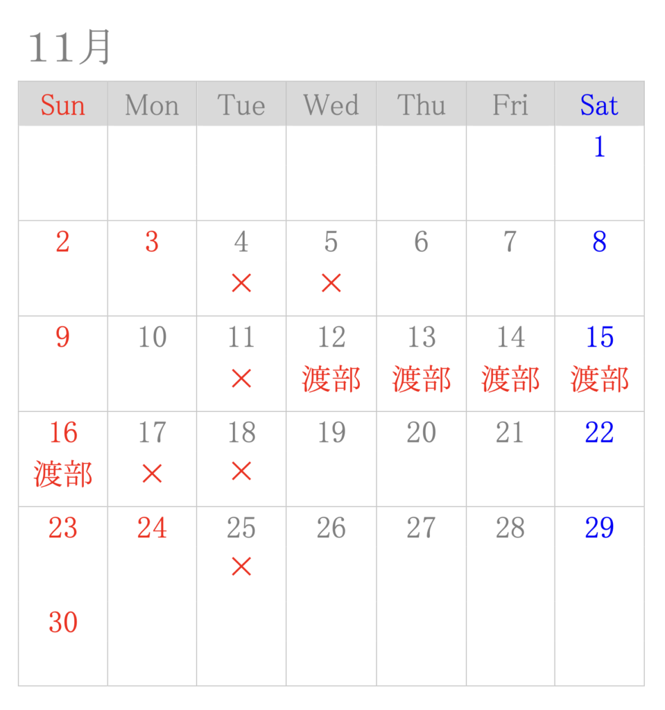 「×」表示となっていても受付可能な場合がございますので、他の日時でのご予約が難しい場合はお手数ですが直接お電話にてお問い合わせ下さい