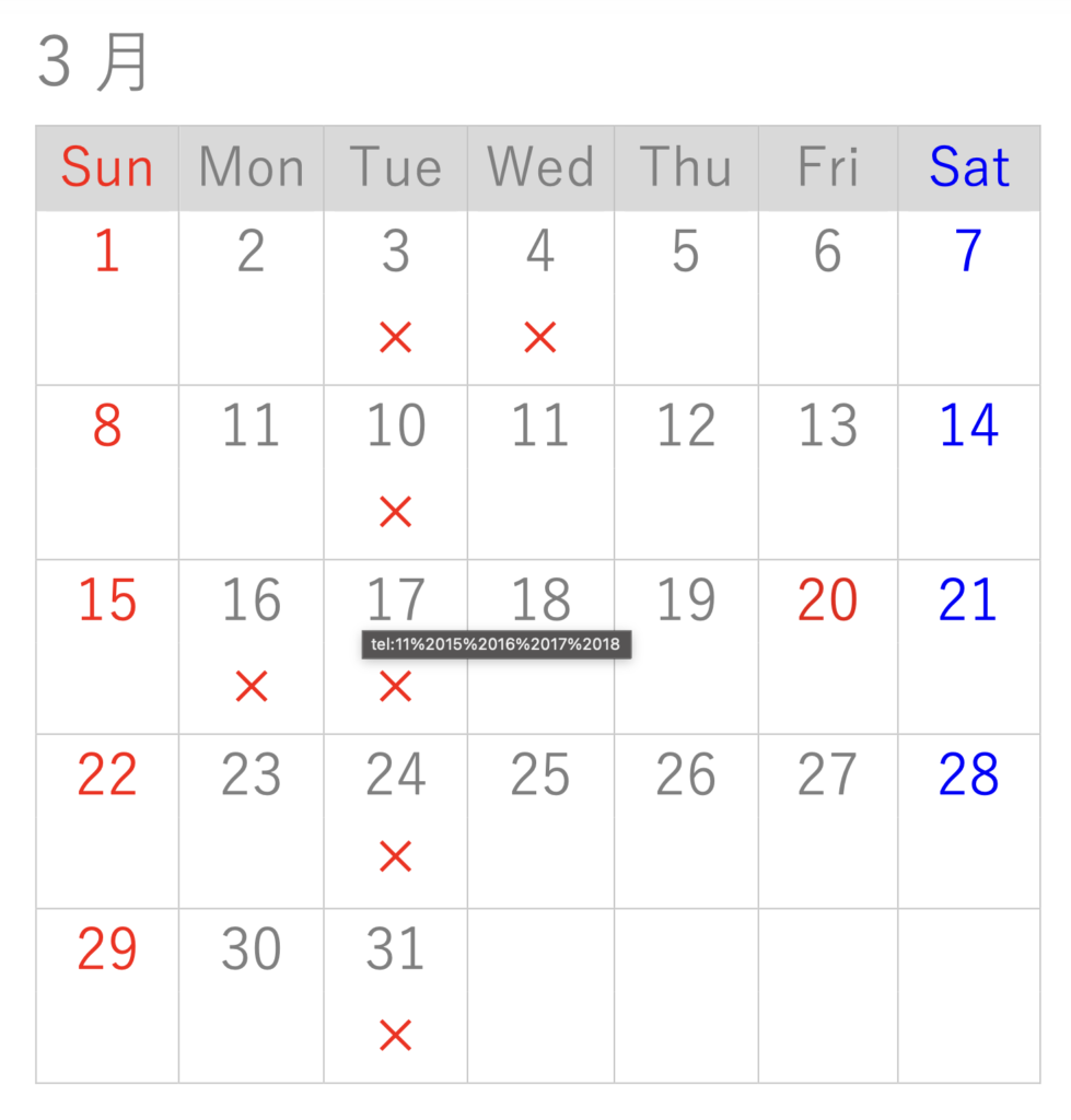 システムの設定上、ご予約可能な時間帯であっても「×」と表示されてしまう場合がございます